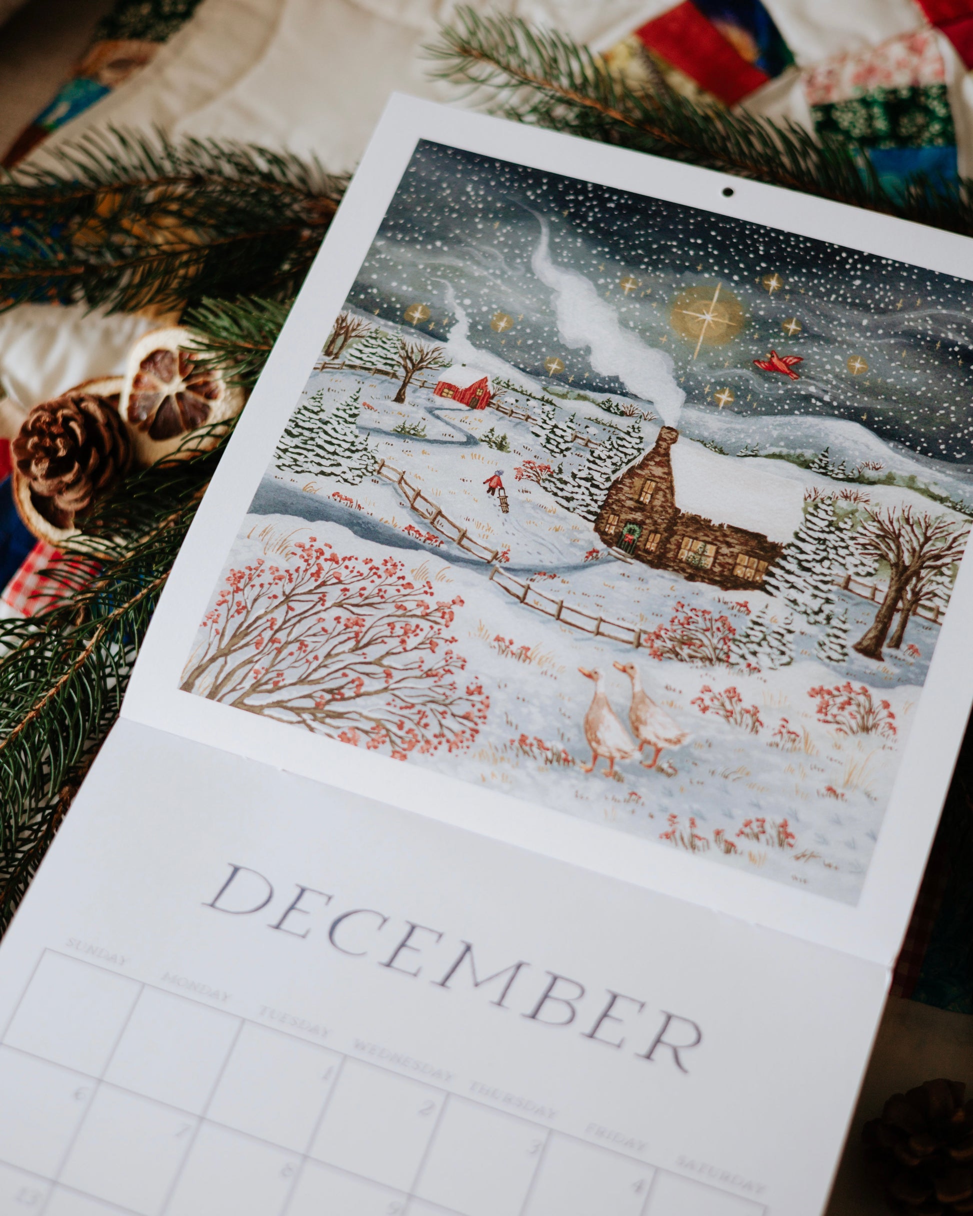 Featured Illustrations: “Snowflakes in Starlight”, “First Snow”, “Produce of Summer”, “Morning Fog”, “July Hydrangeas”, “Brown Swiss Acres”, “New England in October”, “Cottage at Dusk”, “June Musings”, “Honor”, “Farm Fresh Strawberries”, “Summertime at the Pond”