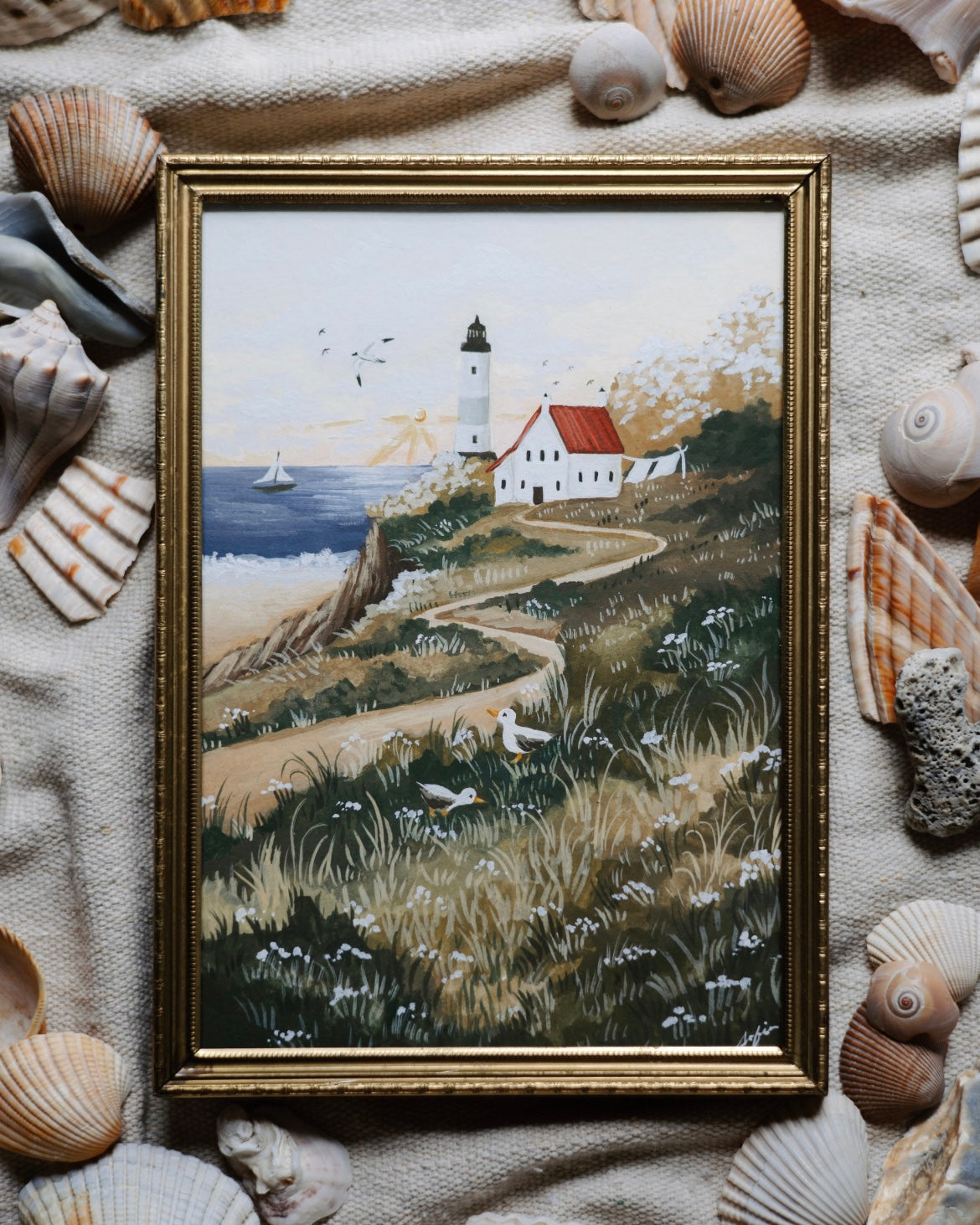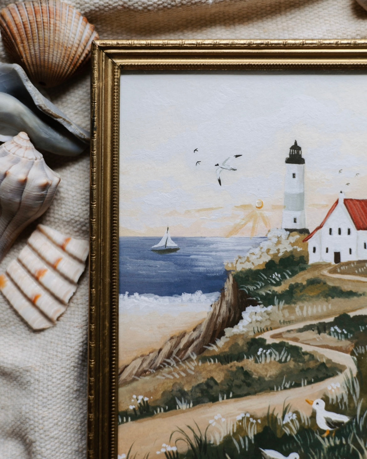 “Coastal Serenity”- ORIGINAL Painting in Vintage Frame