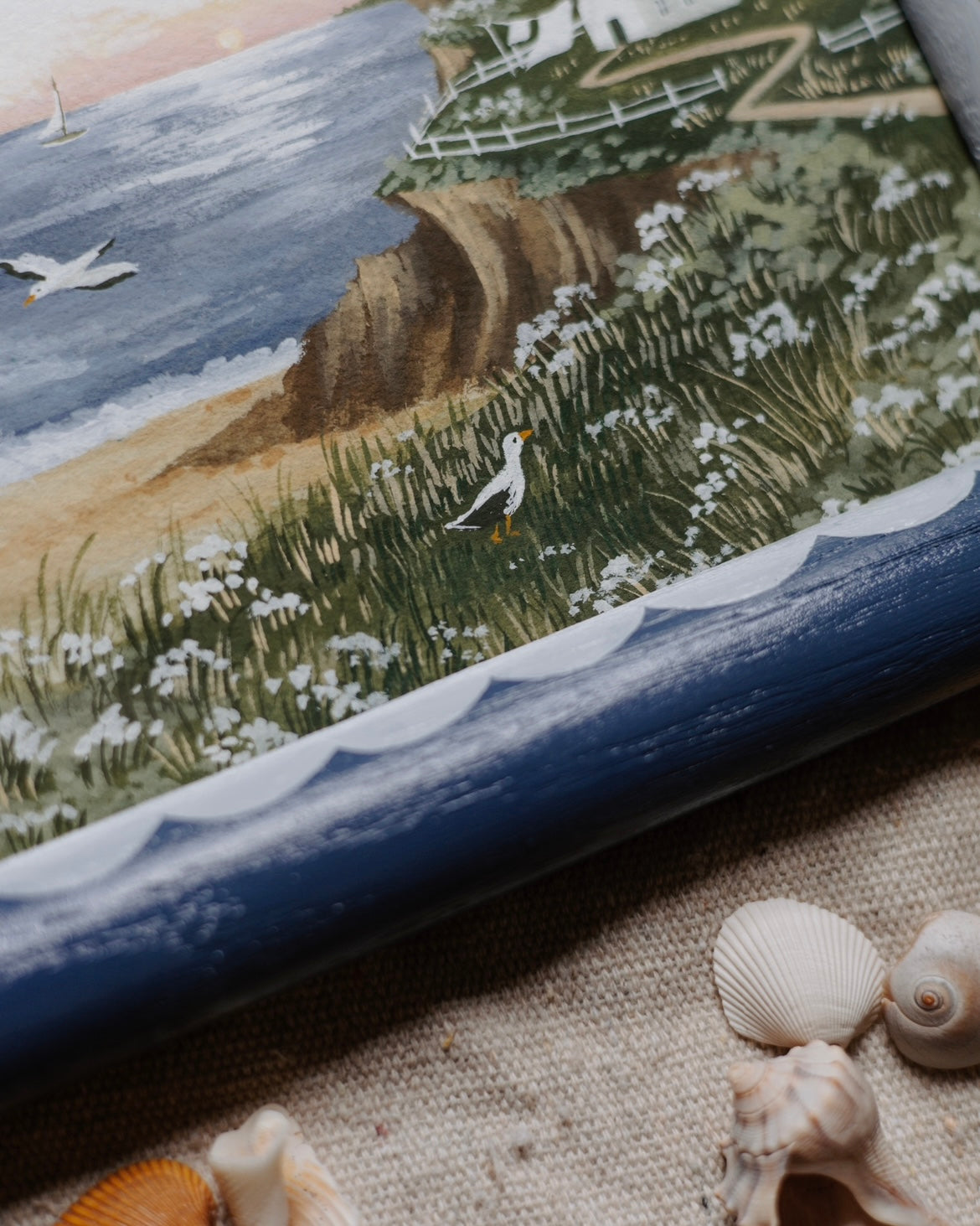 “Cottage By The Sea”- ORIGINAL Painting in Hand Painted Frame