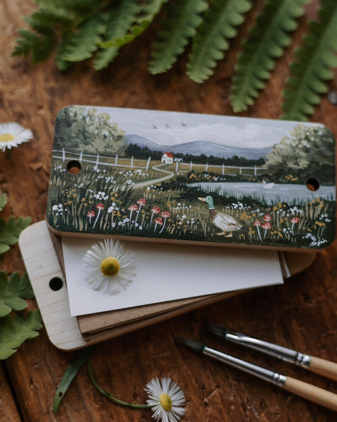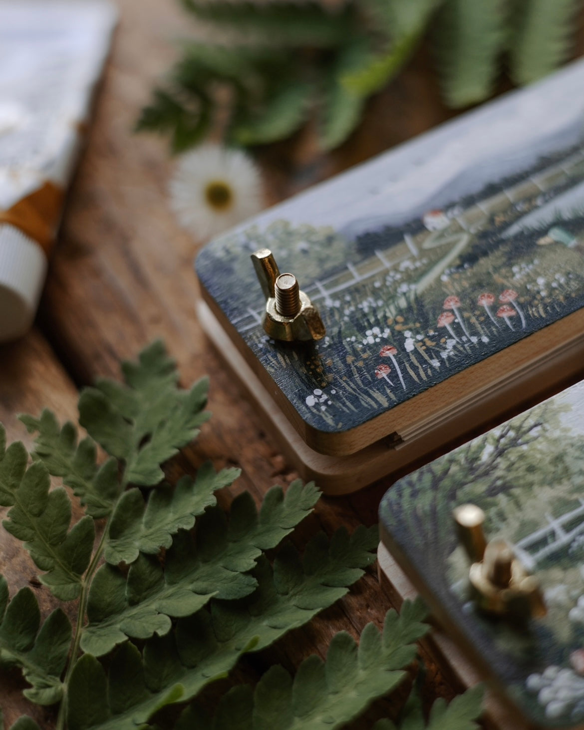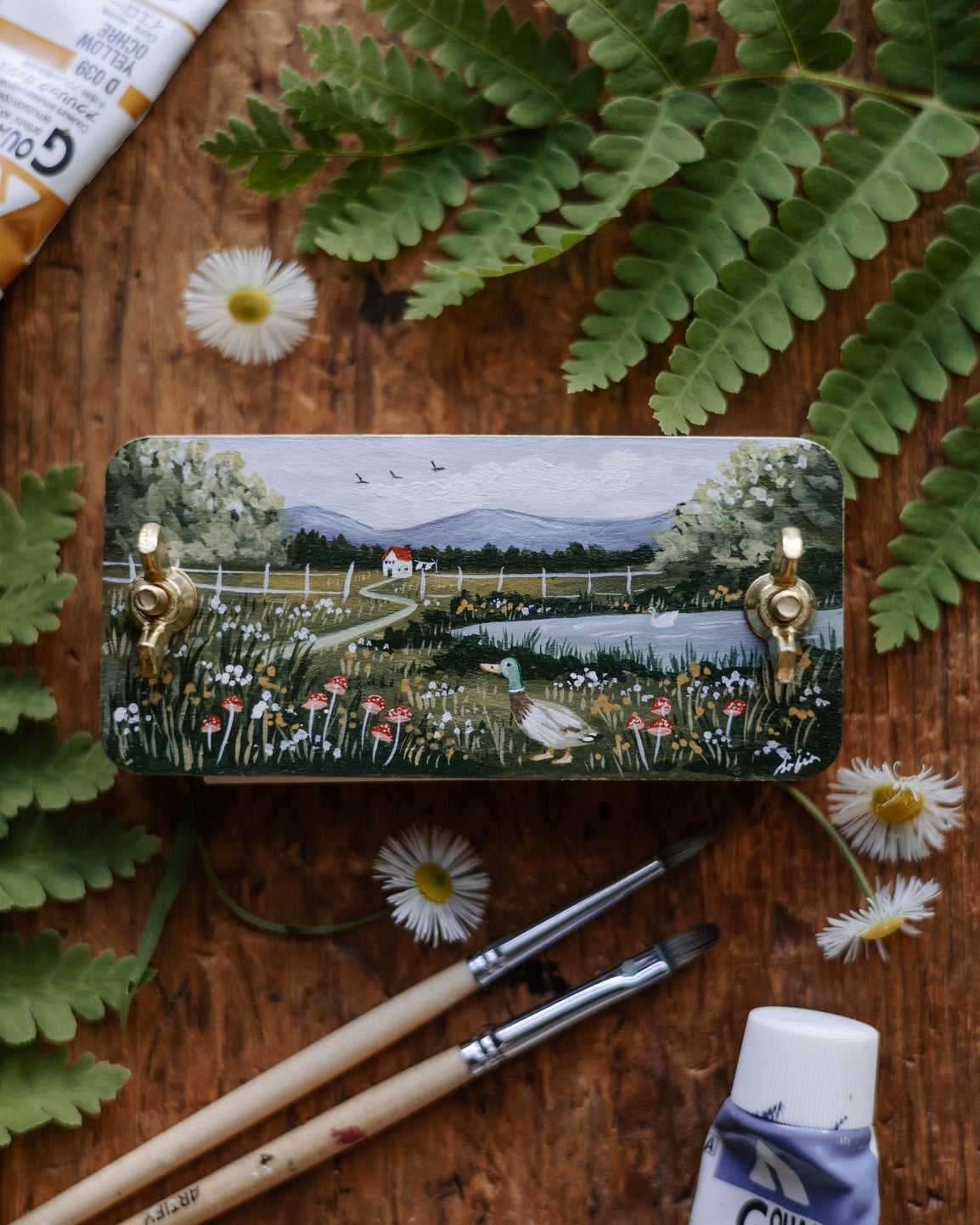 This miniature flower press features a hand-painted scene, and it is perfect for pressing a variety of small flowers and petals. Just imagine filling this heirloom piece with forget-me-nots, pansies, chamomile, and many more for years to come!