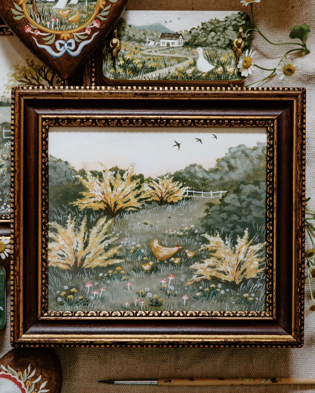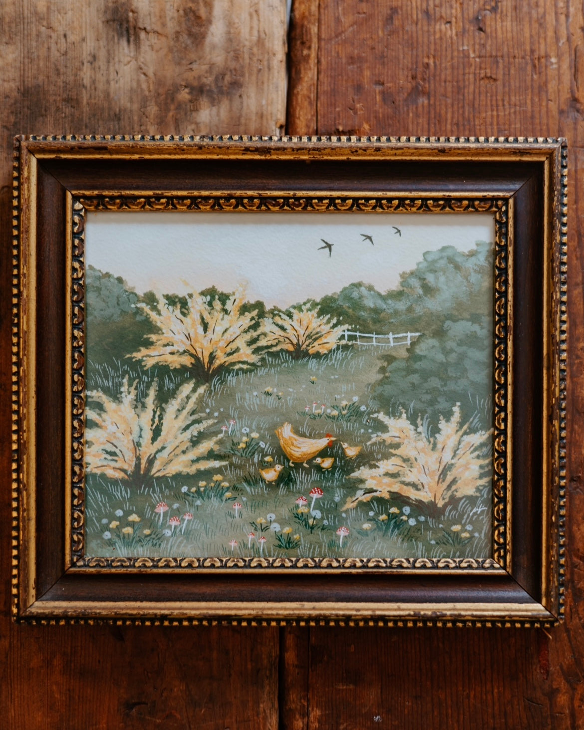 “Golden Forsythia”- ORIGINAL Painting in Vintage Frame