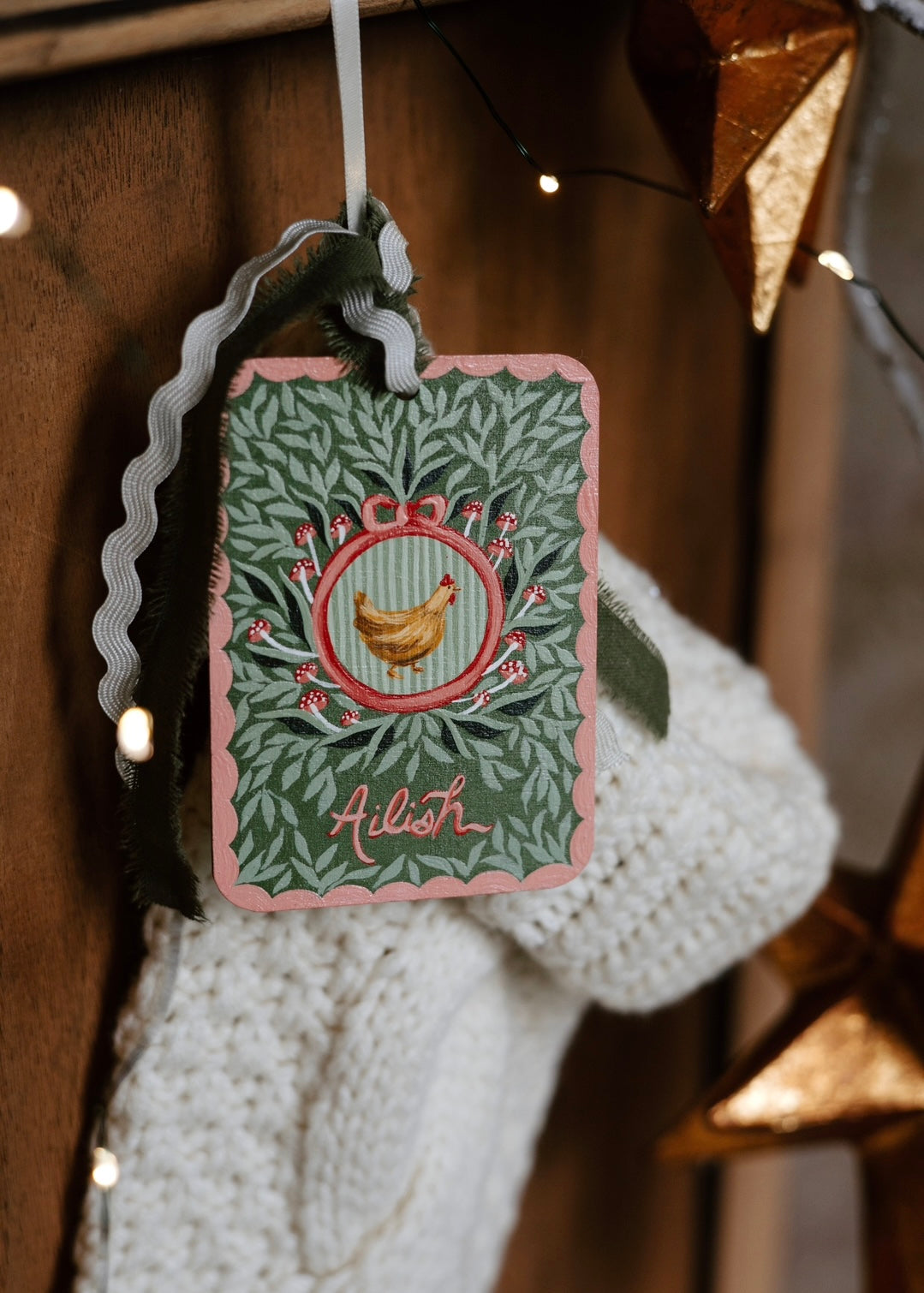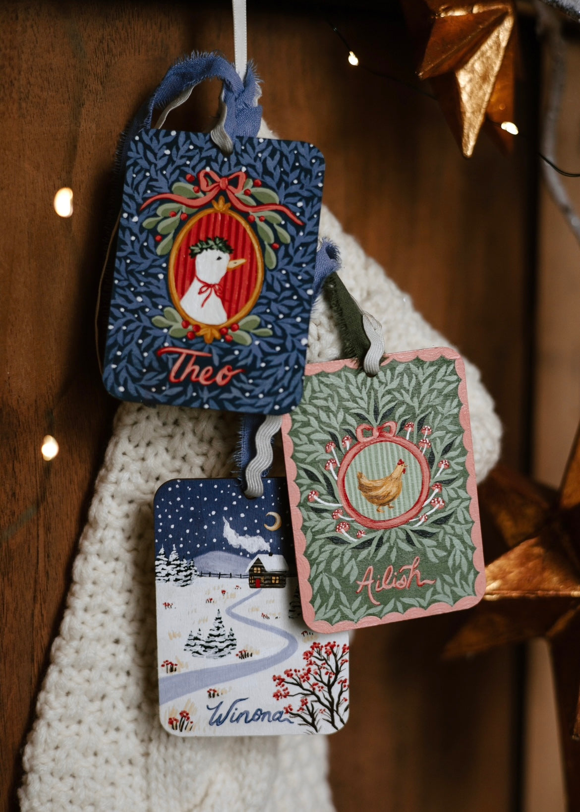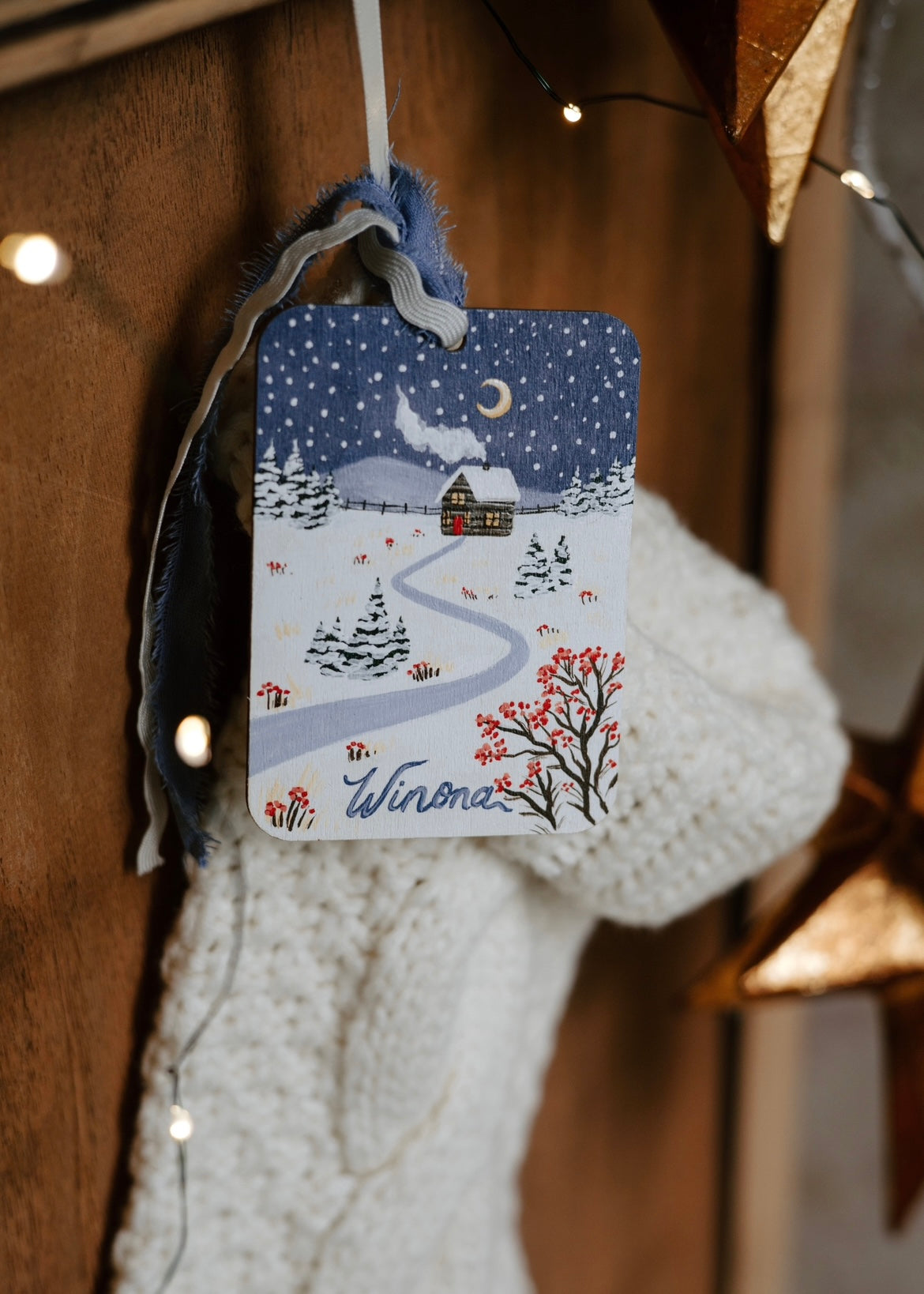 -Tags will be painted with a similar cabin, chicken, or duck design as shown in the photos above. Please keep in mind that due to the handcrafted nature of this piece, each tag will be unique.