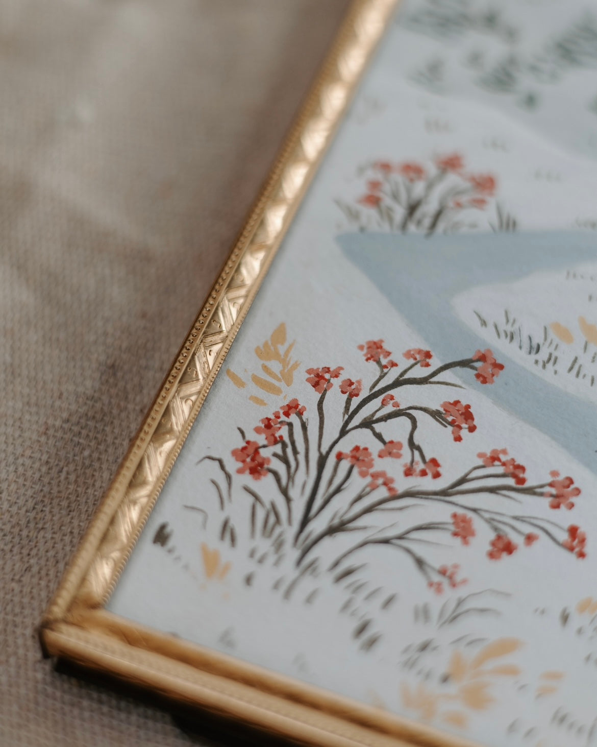 “The Tree Farm”- ORIGINAL Gouache Painting in Vintage Frame